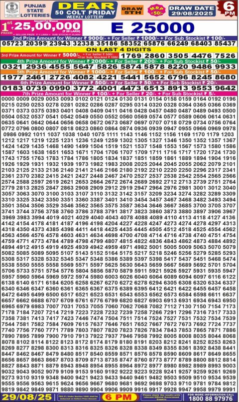 Punjab State Dear 50 Lottery Result – 6 PM Draw – 29 August 2025 – Live Draw & Winners