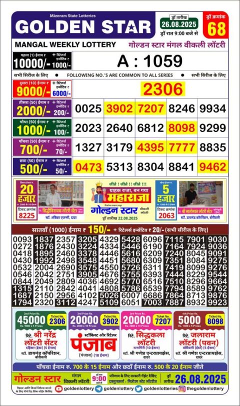 Golden Star Lottery Result 9 PM Today – 26 August 2025 – Live Draw & Winners