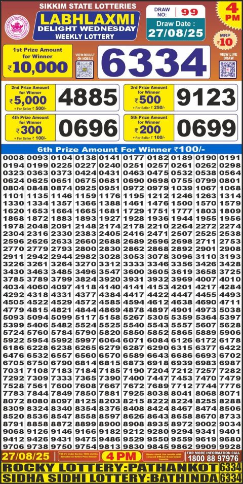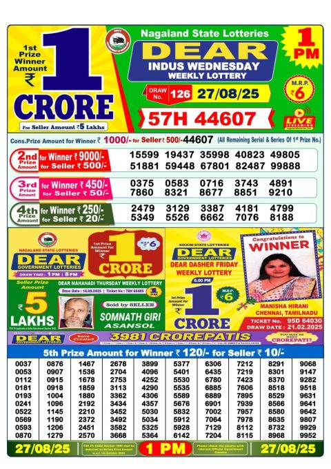 Dear Lottery Result 6 PM – 27 August 2025 – Live Draw & Winners