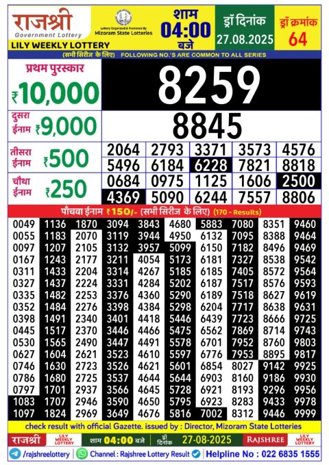 Rajshree Lottery Result Today 4 PM – 27 August 2025 – Live Draw & Winners