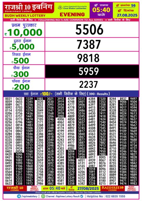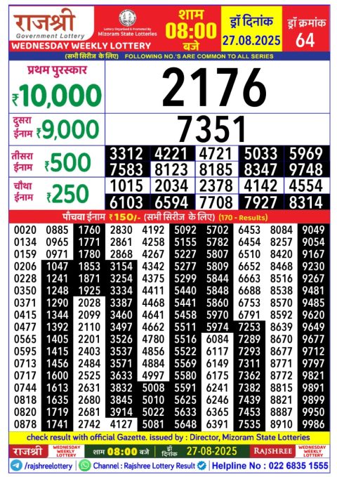 Rajshree Lottery Result 5:40 PM – 27 August 2025 – Live Draw & Winners