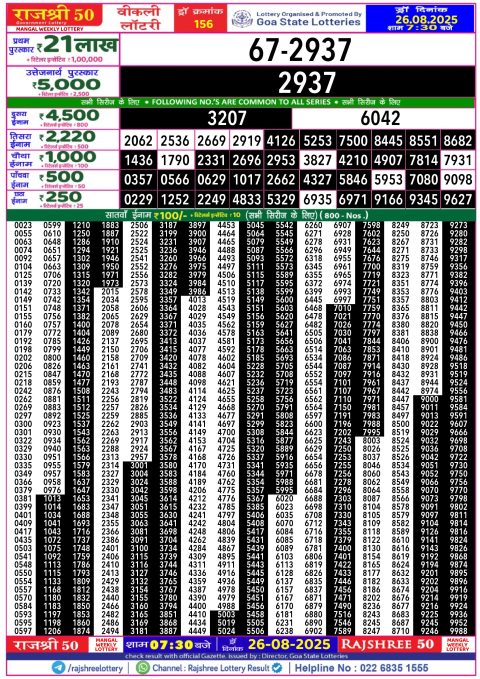 Rajshree 50 Lottery Result Today 7:30 PM – 26 August 2025 – Live Draw &