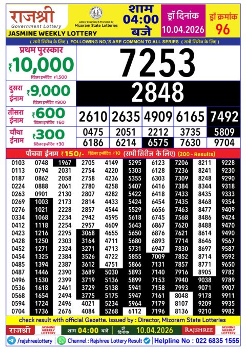 Rajshree Lottery Result 2.25 PM – 10 April 2026 – Live Draw & Winners