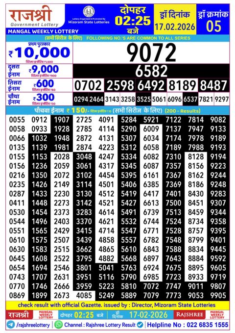 Rajshree Lottery Result 2.25 PM – 17 February 2026 – Live Draw & Winners