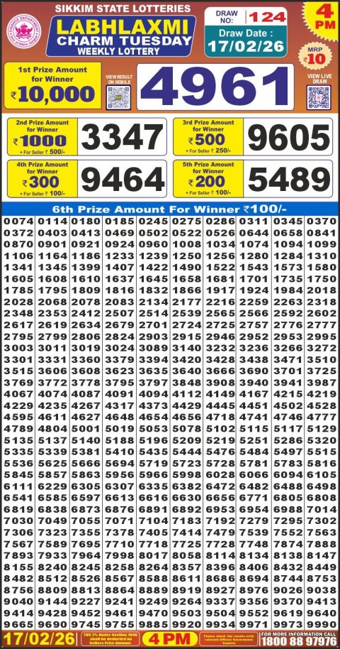 LabhLaxmi Lottery Result Today 4 PM – 17 February 2026 – Live Draw & Winners