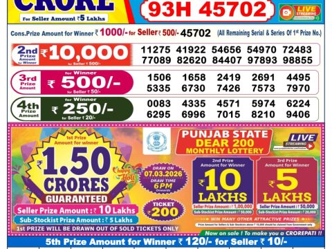 Punjab State Dear 50 Lottery Result – 6 PM Draw – 09 October 2025 – Live Draw & Winners October 9, 2025 Related Results Dear Lottery Result 6 PM – 30 December 2025 – Live Draw & Winners Dear Lottery Result 6 PM – 15 October 2025 – Live Draw & Winners Punjab State Dear 50 Lottery Result – 5 PM Draw – 05 February 2026 – Live Draw & Winners Dear Lottery Result 6 PM – 01 March 2026 – Live Draw & Winners
