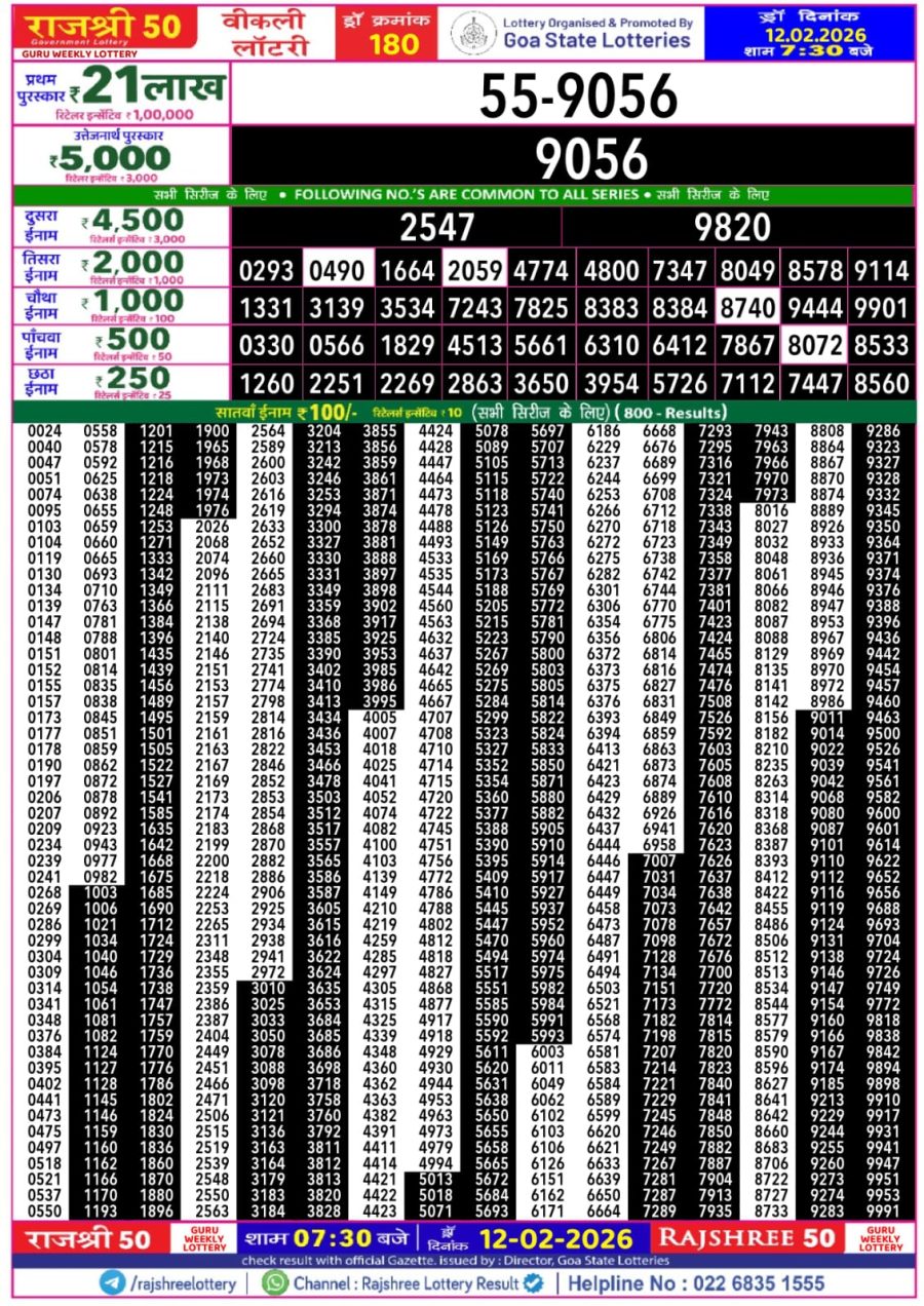 Rajshree 50 Lottery Result Today 7:30 PM – 12 February 2026 – Live Draw February 12, 2026 Related Results Rajshree 50 Lottery Result Today 7:30 PM – 06 July 2025 – Live Draw & Rajshree 50 Lottery Result Today 7:30 PM – 03 October 2025 – Live Draw & Rajshree 50 Lottery Result Today 7:30 PM – 05 August 2025 – Live Draw & Rajshree 50 Lottery Result Today 7:30 PM – 24 June 2025 – Live Draw &