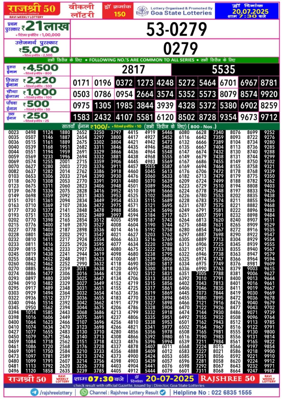 Rajshree 50 Lottery Result Today 7:30 PM – 20 July 2025 – Live Draw & July 20, 2025 Related Results Rajshree 50 Lottery Result Today 7:30 PM – 24 September 2025 – Live Draw & Rajshree 50 Lottery Result Today 7:30 PM – 22 May 2025 – 1st Prize 21 Lakhs Rajshree 50 Lottery Result Today 7:30 PM – 3 June 2025 – Live Draw & Winners Rajshree 50 Lottery Result Today 7:30 PM – 6 June 2025 – Live Draw & Winners