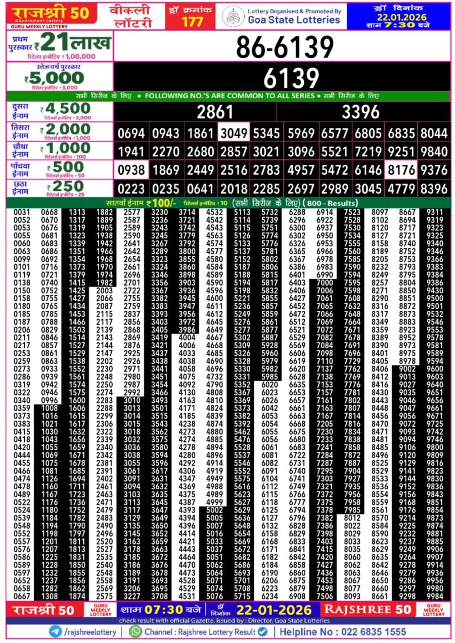 Rajshree 50 Lottery Result Today 7:30 PM – 22 January 2026 – Live Draw January 22, 2026 Related Results Rajshree 50 Lottery Result Today 7:30 PM – 05 February 2026 – Live Draw Rajshree 50 Lottery Result Today 7:30 PM – 23 December 2025 – Live Draw Rajshree 50 Lottery Result Today 7:30 PM – 07 July 2025 – Live Draw & Rajshree 50 Lottery Result Today 7:30 PM – 25 January 2026 – Live Draw