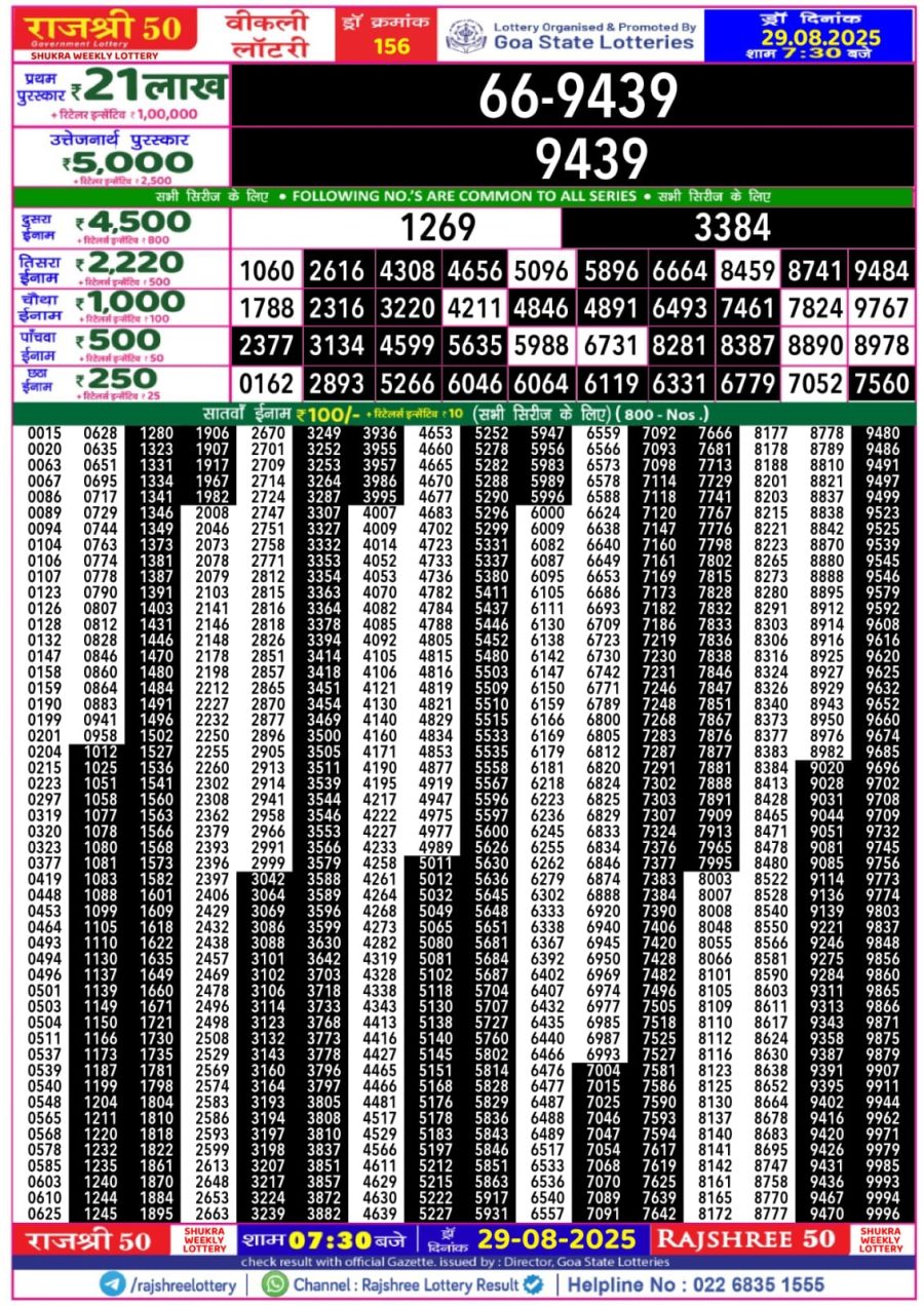 Rajshree 50 Lottery Result Today 7:30 PM – 29 August 2025 – Live Draw & August 29, 2025 Related Results Rajshree 50 Lottery Result Today 7:30 PM – 31 August 2025 – Live Draw & Rajshree 50 Lottery Result Today 7:30 PM – 28 June 2025 – Live Draw & Rajshree 50 Lottery Result Today 7:30 PM – 05 October 2025 – Live Draw & Rajshree 50 Lottery Result Today 7:30 PM – 16 July 2025 – Live Draw &