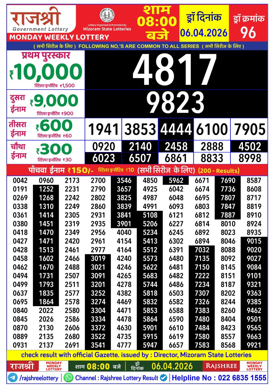 Rajshree Lottery 8 PM Result – 06 April 2026 – Live Draw & Winners