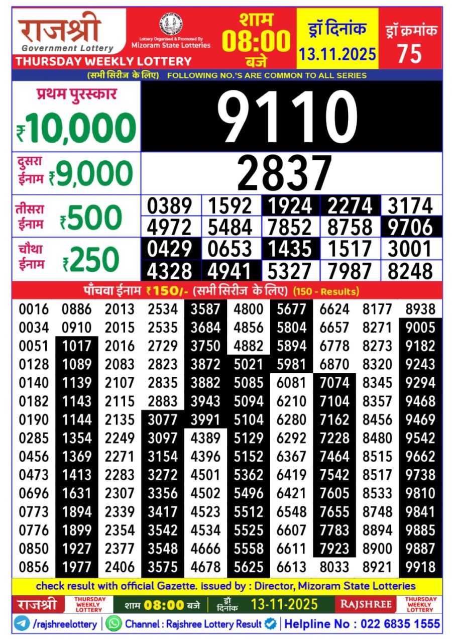 Rajshree Lottery 8 PM Result – 13 November 2025 – Live Draw & Winners November 13, 2025 Related Results Dear Lottery 8 PM Result – 22 June 2025 – Live Draw & Winners Rajshree Lottery 8 PM Result – 23 October 2025 – Live Draw & Winners Rajshree Lottery 8 PM Result – 24 August 2025 – Live Draw & Winners Rajshree Lottery 8 PM Result – 21 October 2025 – Live Draw & Winners